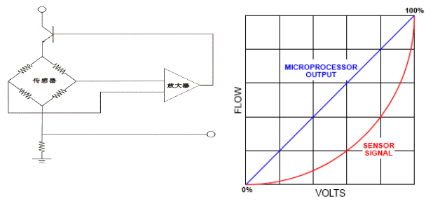 對加(jia)熱探頭(tou)的總能(neng)量供應(yīng)正比于(yú)氣體質(zhì)量流量(liang),微🥵處🌈理(li)器輸出(chu)線性信(xin)号。